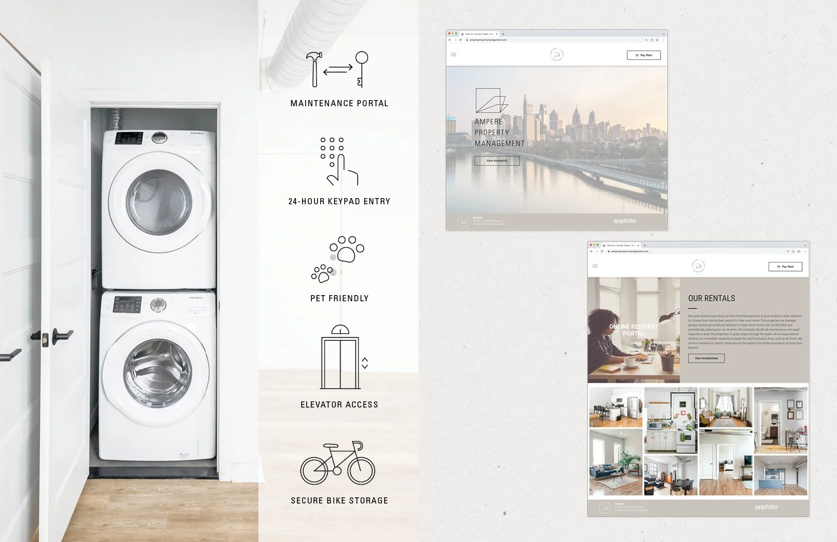 An expansive branding refresh for a boutique real estate investment firm, including a brand intro book for new investors; multiple web portals; design usage guidelines; photography of rentals, project progress, and employees; new logos; and illustration of iconography and plot elevations. The previous branding was heavy, gloomy, and impersonal. To build trust with tenants and investors alike, it was time to put a face to the business. A warm, bright, neutral palette was created to invite people in. Consistency in line weight, contrast, and execution rounded out an aesthetic that feels responsible and clean, but friendly.